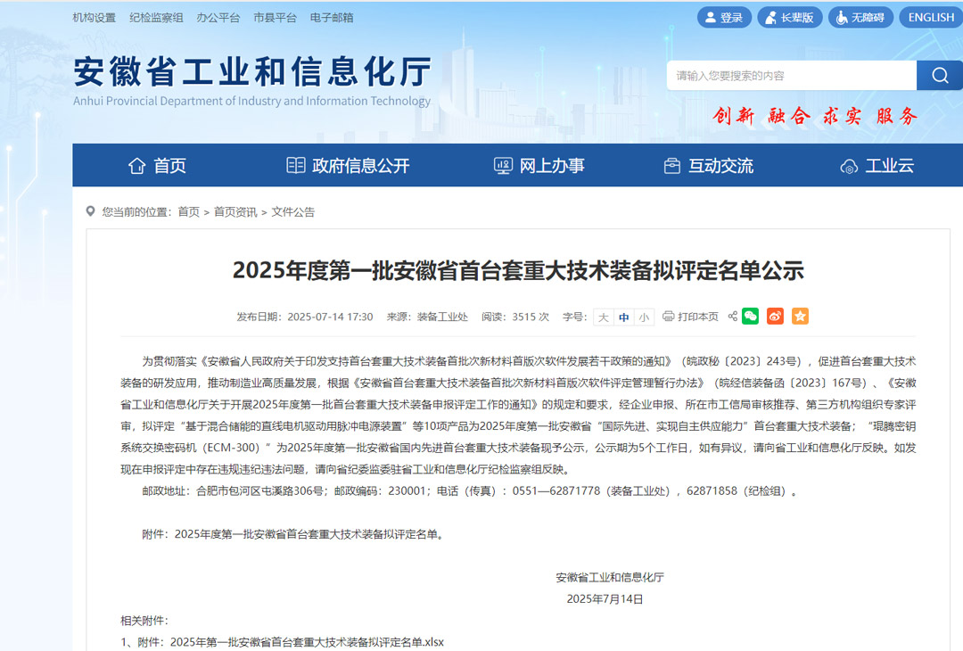Authoritative Recognition|EFORK Again Named “Anhui Province Major First-of-its-Kind Equipment” Jul 31, 2025